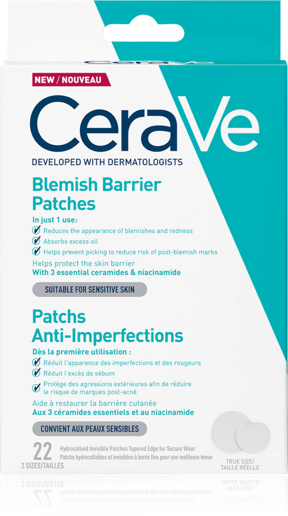 CERAVE Pattanások elleni tapasz 3 bőrazonos ceramiddal és niacinamiddal.