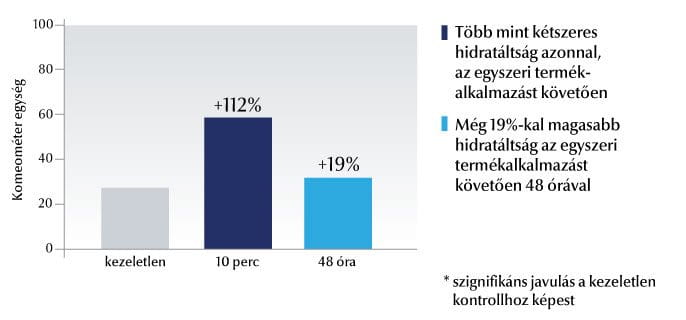 171, 25 és 75 év közötti, száraz bőrű nővel részvételével készült termékhasználati tanulmány (PiU) eredményei alapján a résztvevők a következő eredményekről számoltak be:1